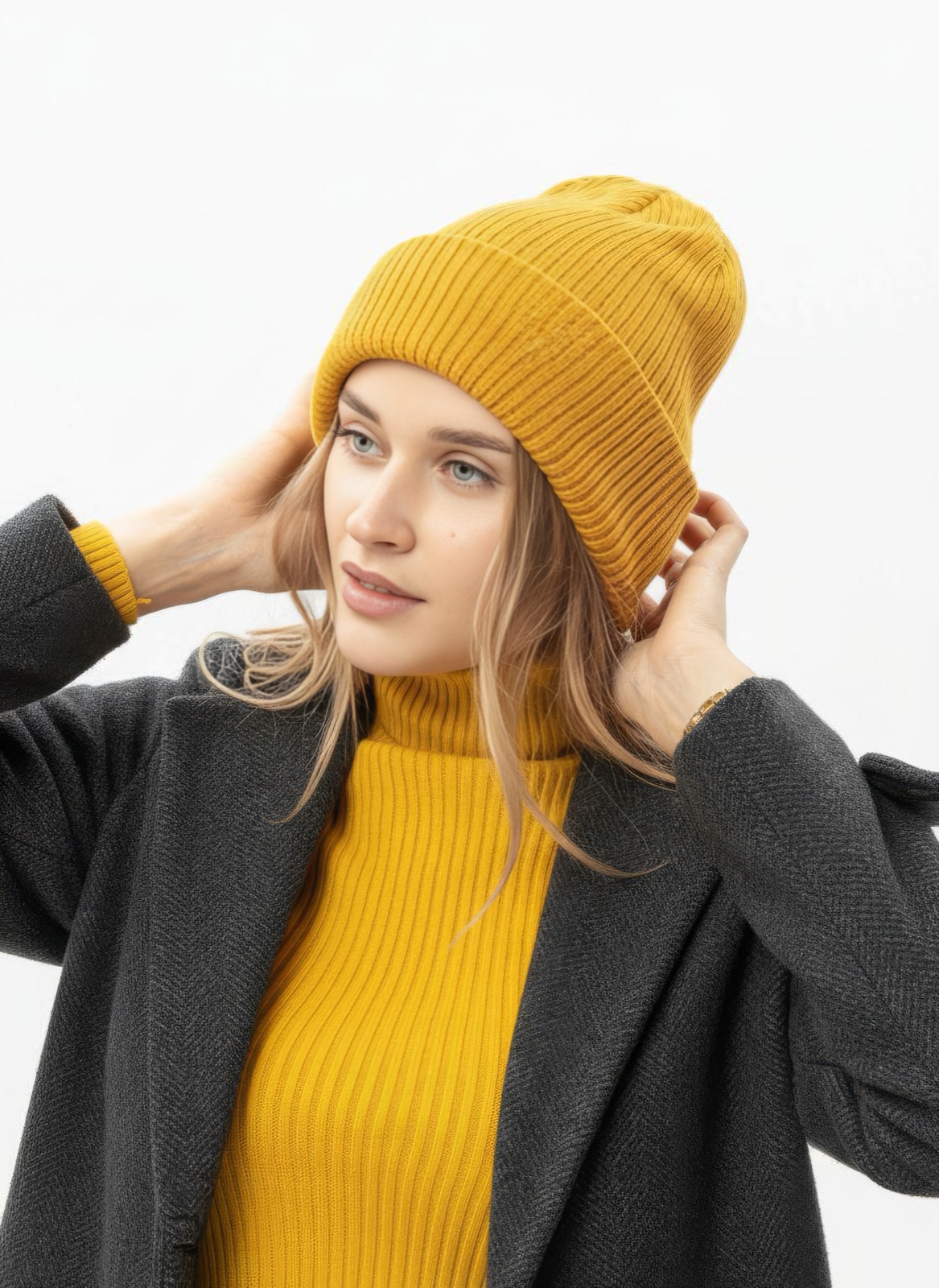 Das perfekte Kanariengelb Outfit Winter 2025 kombiniert mutige Statement-Pieces mit neutralen Basics. Ein gelber Wollmantel über einem anthrazitfarbenen Rollkragenpullover und dunkler Jeans schafft einen eleganten Kontrast. Wer es subtiler mag, greift zu gelben Accessoires wie Handschuhen, Mützen oder einer strukturierten Handtasche, die jedem minimalistischen Outfit sofort Charakter verleihen.