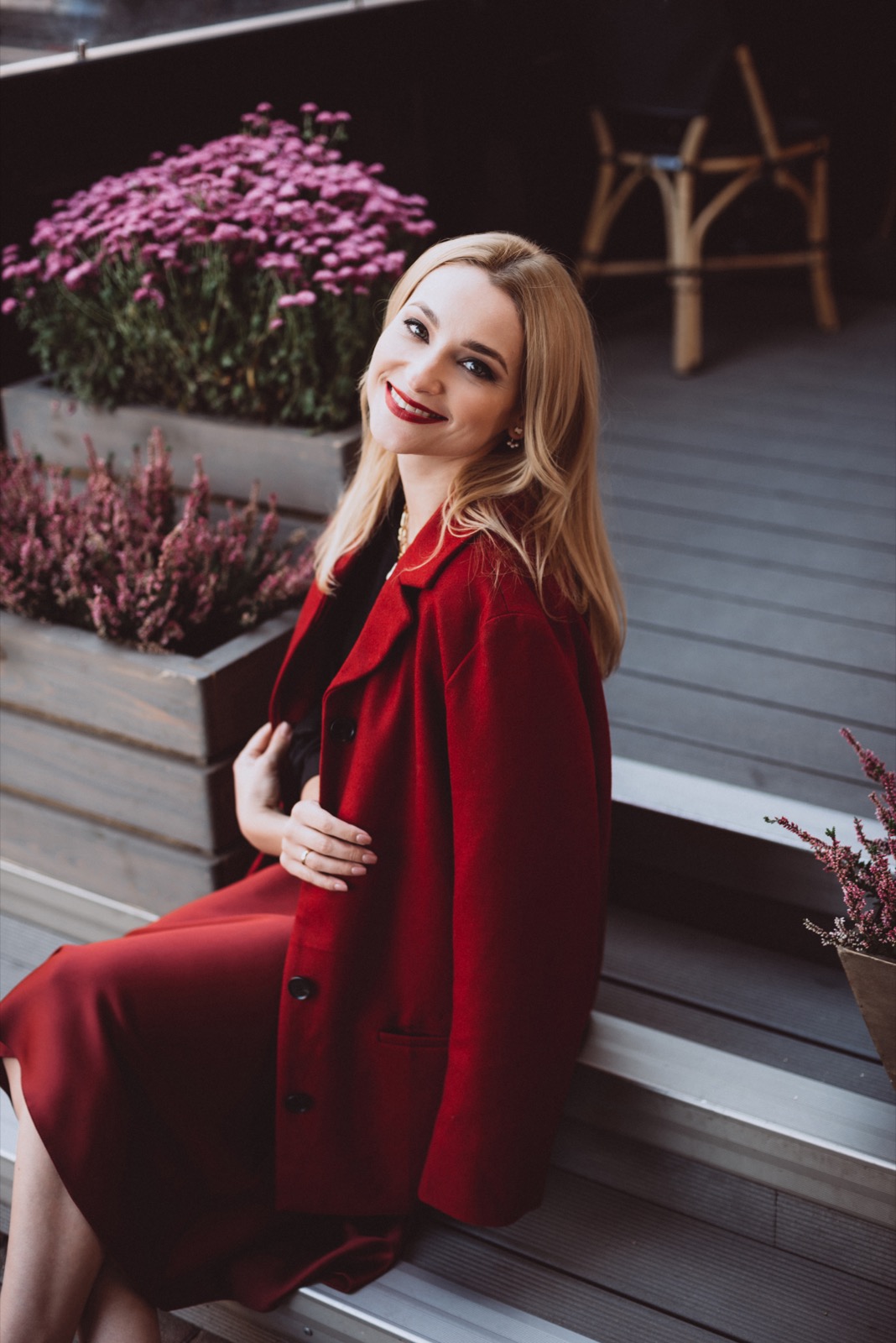 Diese Kombination funktioniert nach dem Prinzip des maximalen Kontrasts: Das gediegene, fast zurückhaltende Anthrazit bildet die perfekte Leinwand für explosives Orange. Besonders gelungen wirkt die Kombination, wenn Orange als gezielter Akzent eingesetzt wird – etwa bei Accessoires, Schuhen oder als Blickfang in einem ansonsten anthrazitfarbenen Ensemble.