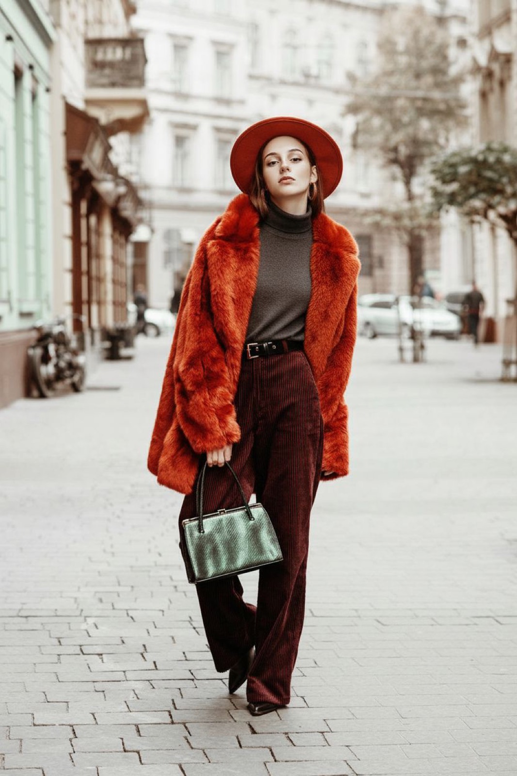Styling-Geheimnis: Um Pistaziengrün wintertauglich zu machen, kombiniere es mit Materialien wie schwerem Strick, Teddy-Stoffen oder Kaschmir. Ein pistaziengrüner Cardigan über einem weißen Rollkragenpullover und einer anthrazitfarbenen Wollhose schafft eine moderne Wintersilhouette.